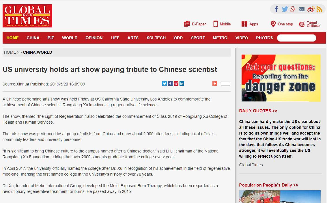 举世时报:US university holds art show paying tribute to Chinese scientist